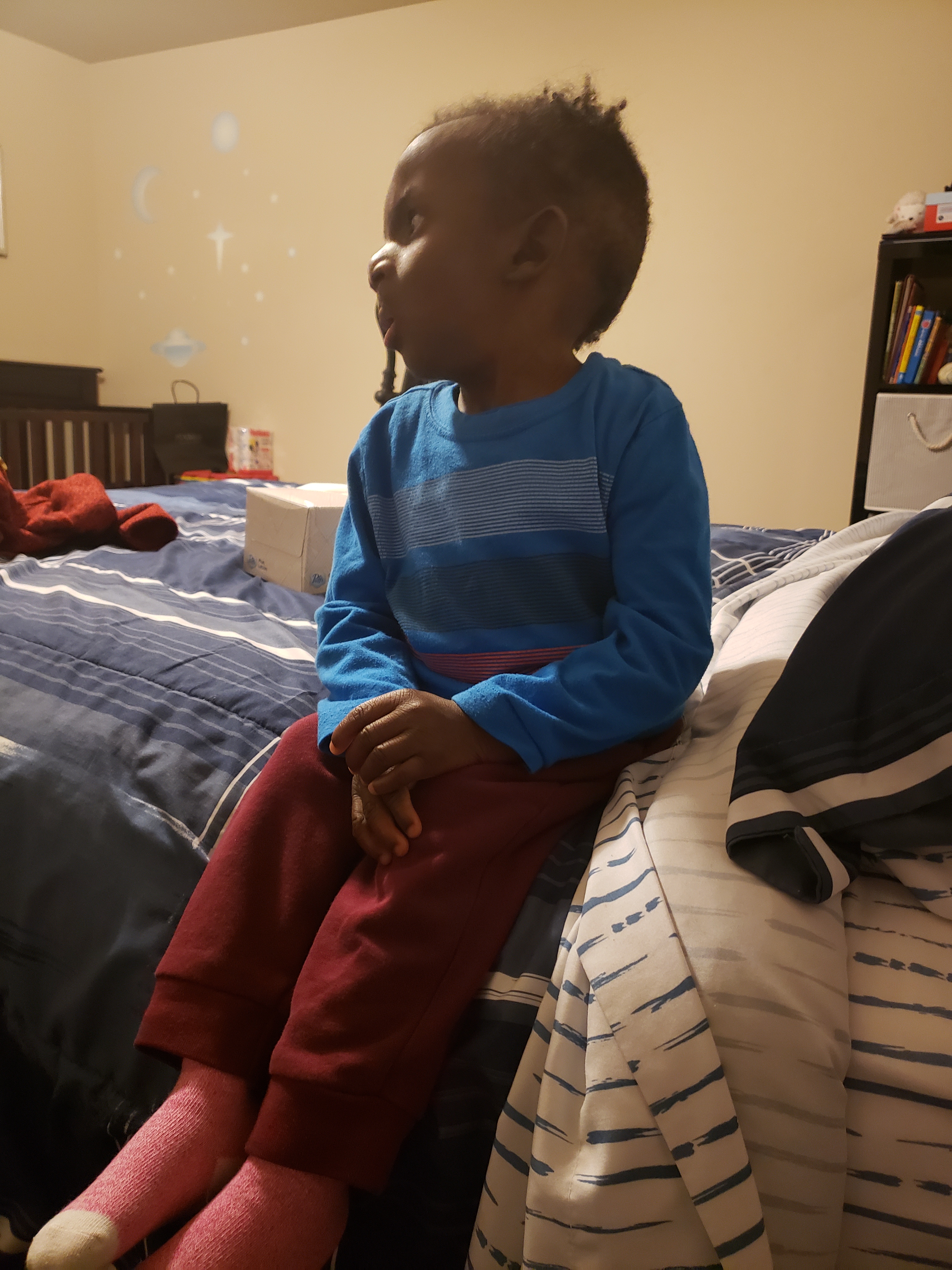 Early rises for diaper changes, virtual classes and doctor’s appointments.. sometimes I don’t want to be bothered. I’d much rather stay nestled in Mom and Dad’s bed until I’m ready to get up!