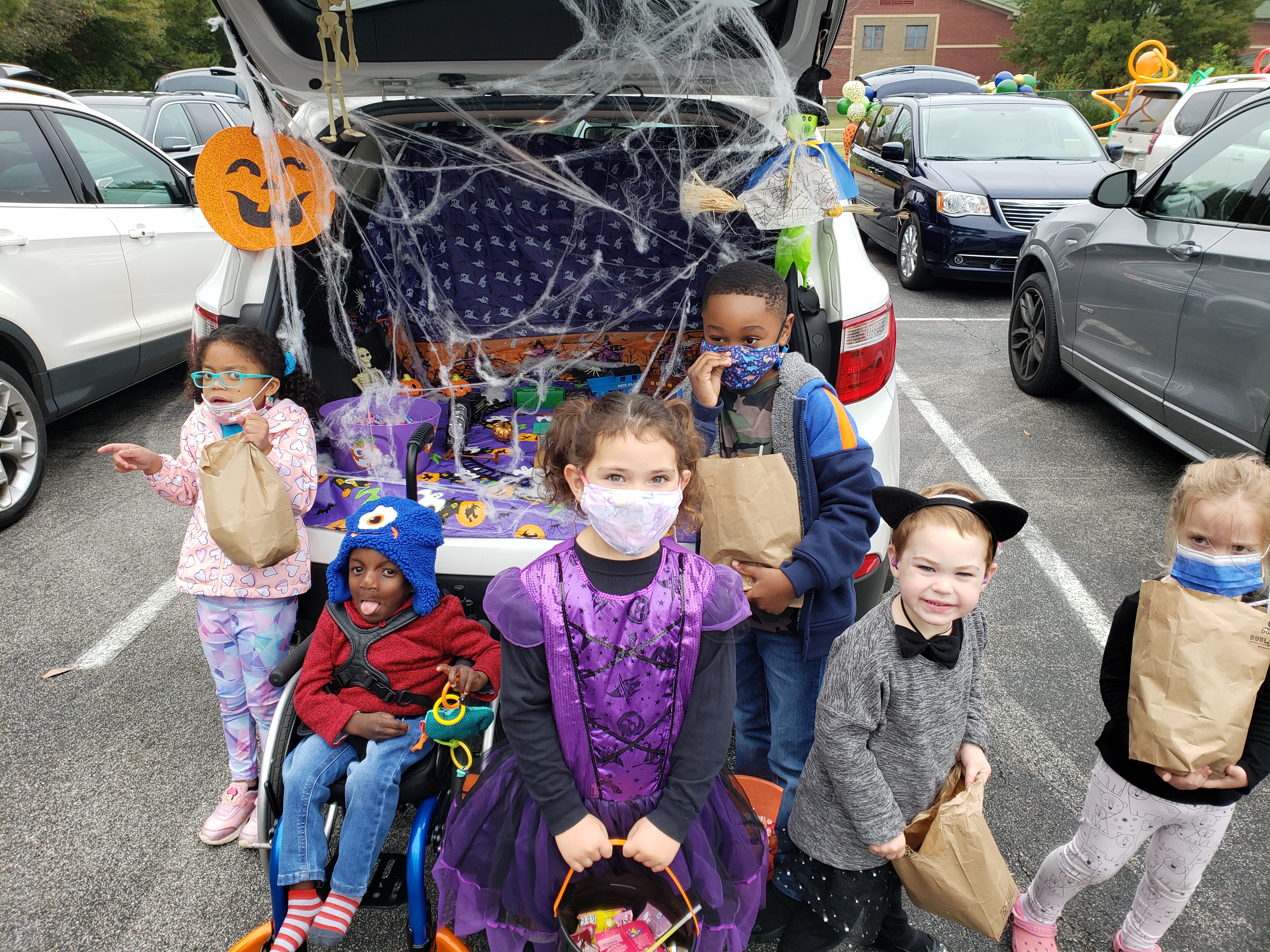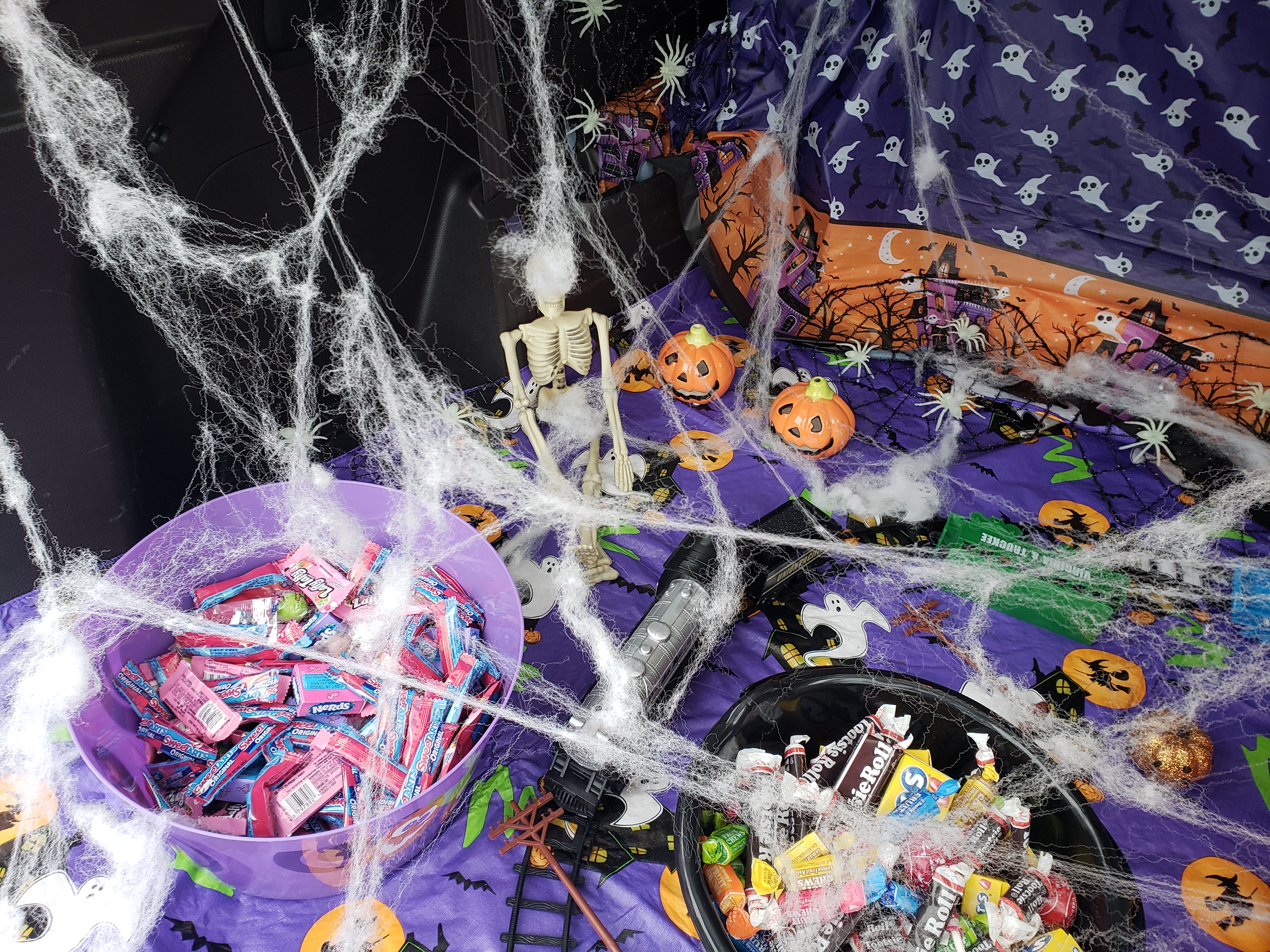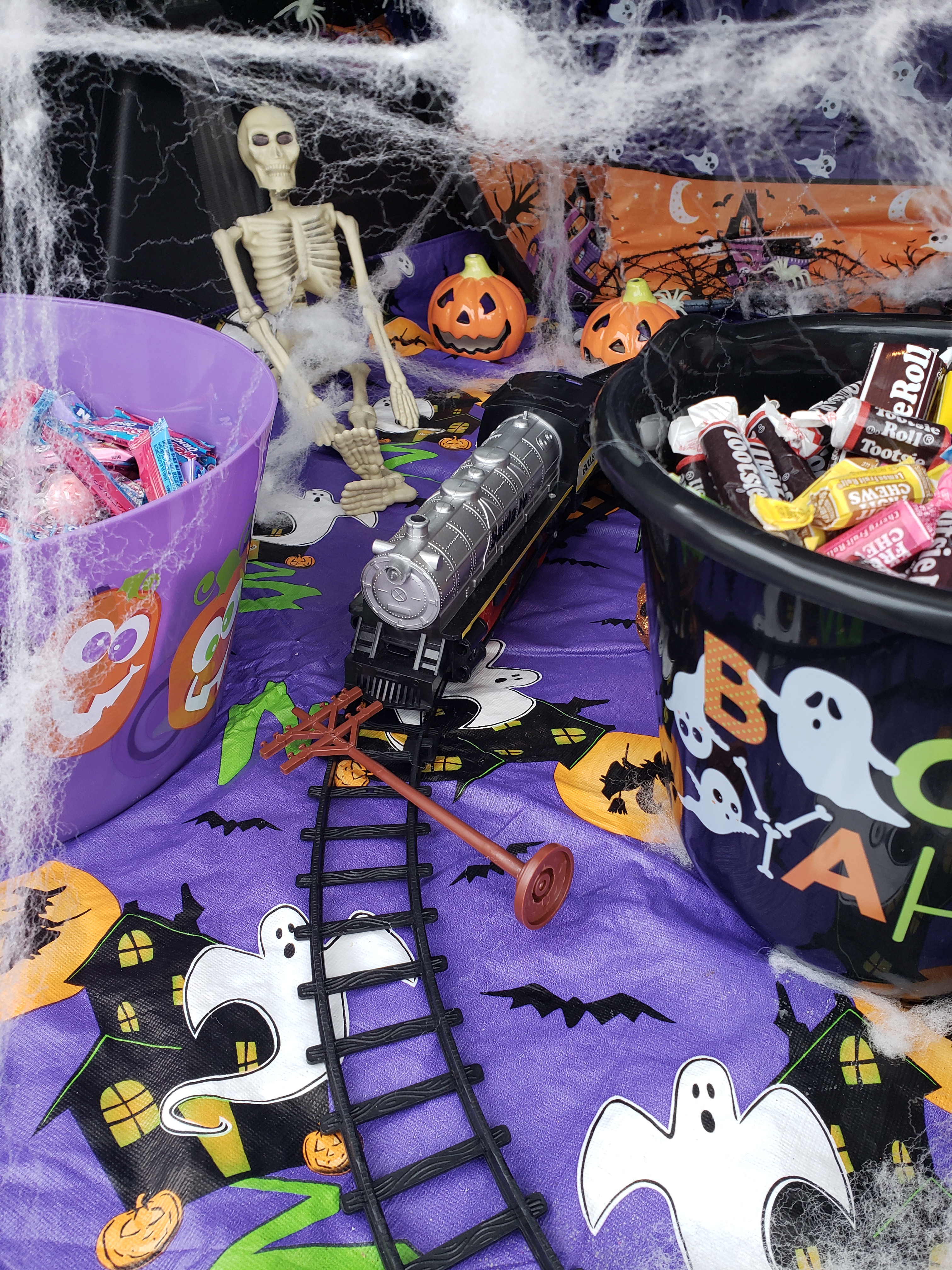 I know I’m late.. things have been busy! We had a trunk ‘o treat at school for Halloween! The trunk of my Mom’s truck was decorated like a spooky train station. There were skeletons, witches, ghosts, and spiderwebs! And, she had a working train that played when me and my friends stopped by. It was really fun and I got a lot of candy!